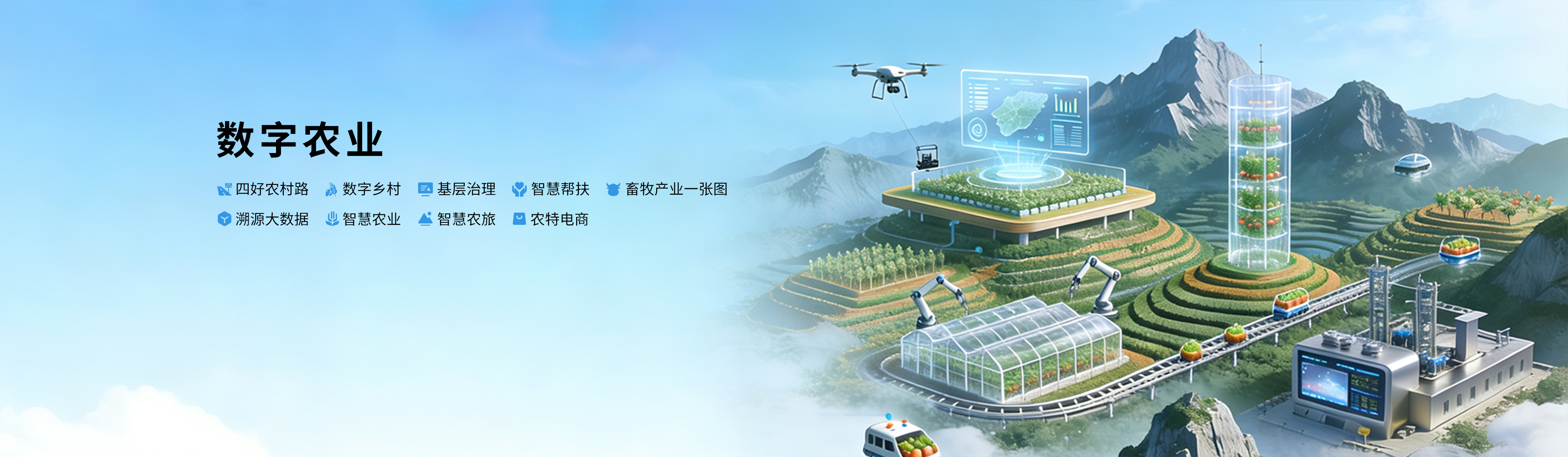 深度融合5G、人工智能、区块链等前沿技术,打造农业产业数字化生态。覆盖畜牧养殖、特色种植、农产品溯源、农旅融合等全产业链场景,推动农业生产智能化、经营网络化、管理数据化、服务在线化。