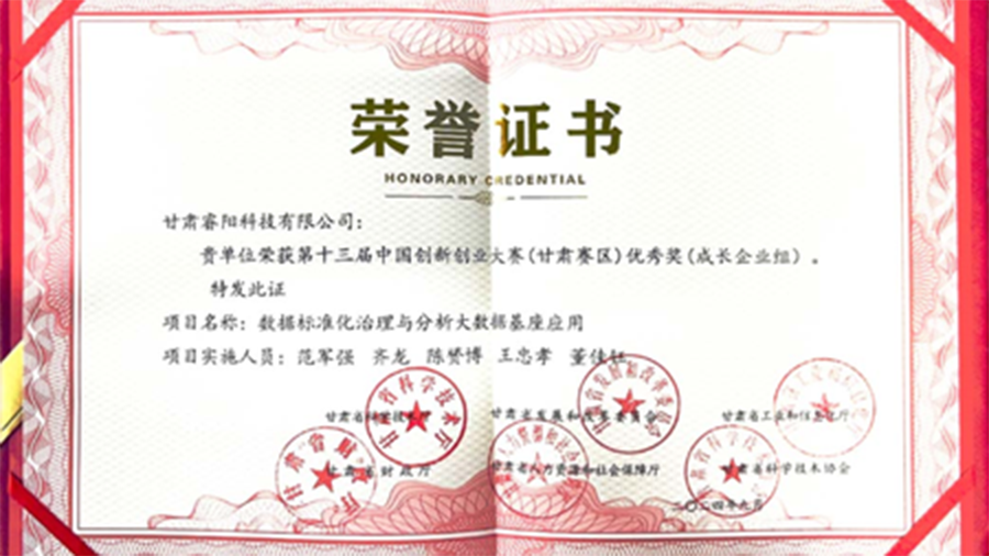 8月28日、29日,以“因创而聚,向新同行”为主题的第十三届中国创新创业大赛(甘肃赛区)决赛暨颁奖典礼在兰州举行,大赛由省科技厅、省发改委、省工信厅、省财政厅、省人社厅和省科协联办,省高新技术创业服务中心等承办。睿阳科技“数据标准化治理与分析大数据基座应用”荣获成长组优秀奖。 睿阳maxData数据基座,融合湖仓构建了便捷高效的...