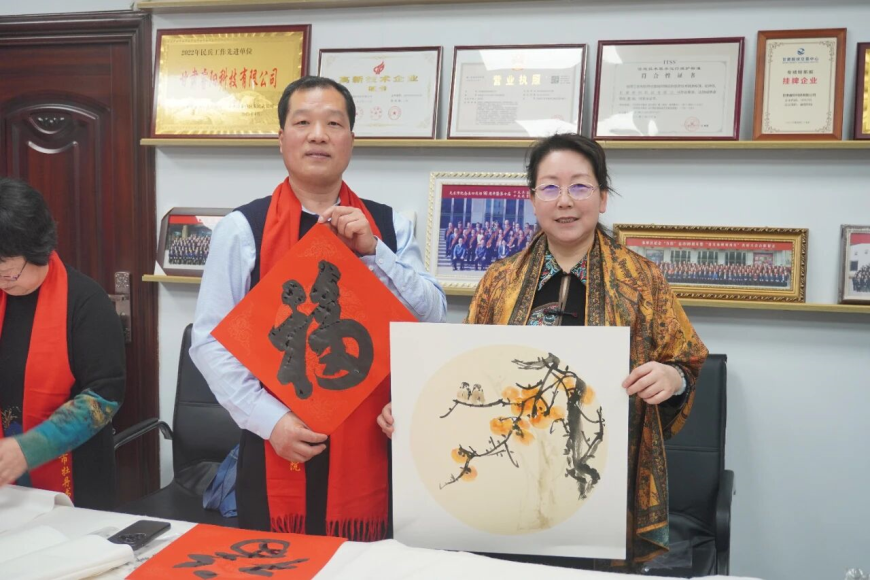 丹青送福暖睿阳·翰墨迎春扬传统—天水市牡丹书画院党支部走进睿阳科技开展马年“万福迎春”公益活动